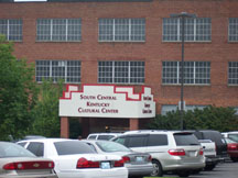 Parking lot and entrance to South Central Kentucky Cultural Center just off Historic Hwy 68/80 on the corner of the Glasgow Square.