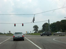 Stoplight which gives travelers on Hwy 68/80 the choice of taking the bypass around Hopkinsville or taking the historic route through downtown.