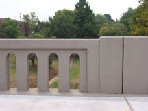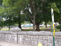 Close up view of rock fence in front of Peace Park