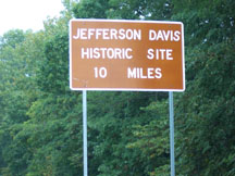 Official brown sign for Jefferson Davis Monument (10 miles ahead)