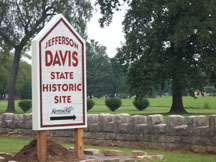 Sign at the entrance to Jefferson Davis State Historic Site. Museum, gift shop and tours