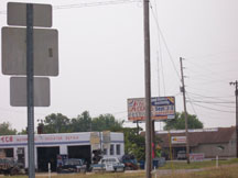 Highly commercial area with numerous fast food restaurants, gas stations, grocery store and hotel.